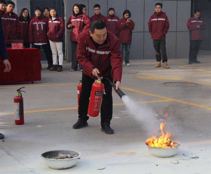 活动特别邀请市消防大队上郡路消防救援站站长助理金智国,班长罗阳阳现场讲解有关火灾现场的应急处置方案,发生火灾后的基本扑救方法,自防自救措施、逃生方法和安全疏散方法,以及干粉灭火器和二氧化碳灭火器的基本操作方法及注意事项,并模拟起火现场,手把手指导干部职工实际操作灭火演习。