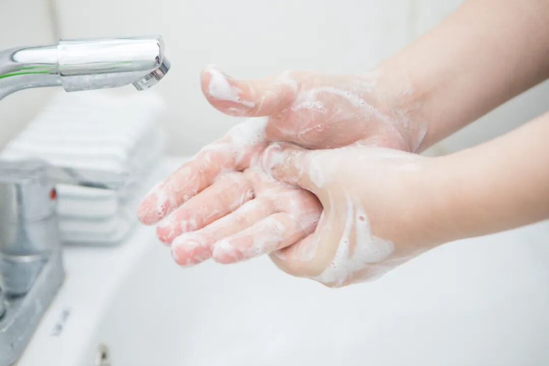 外出回家后,及时进行手卫生(洗手或手消毒)。手部有肉眼可见污物时,用洗手液/皂液在流动水下洗手,无可见污物时,可用手消毒剂揉搓双手。